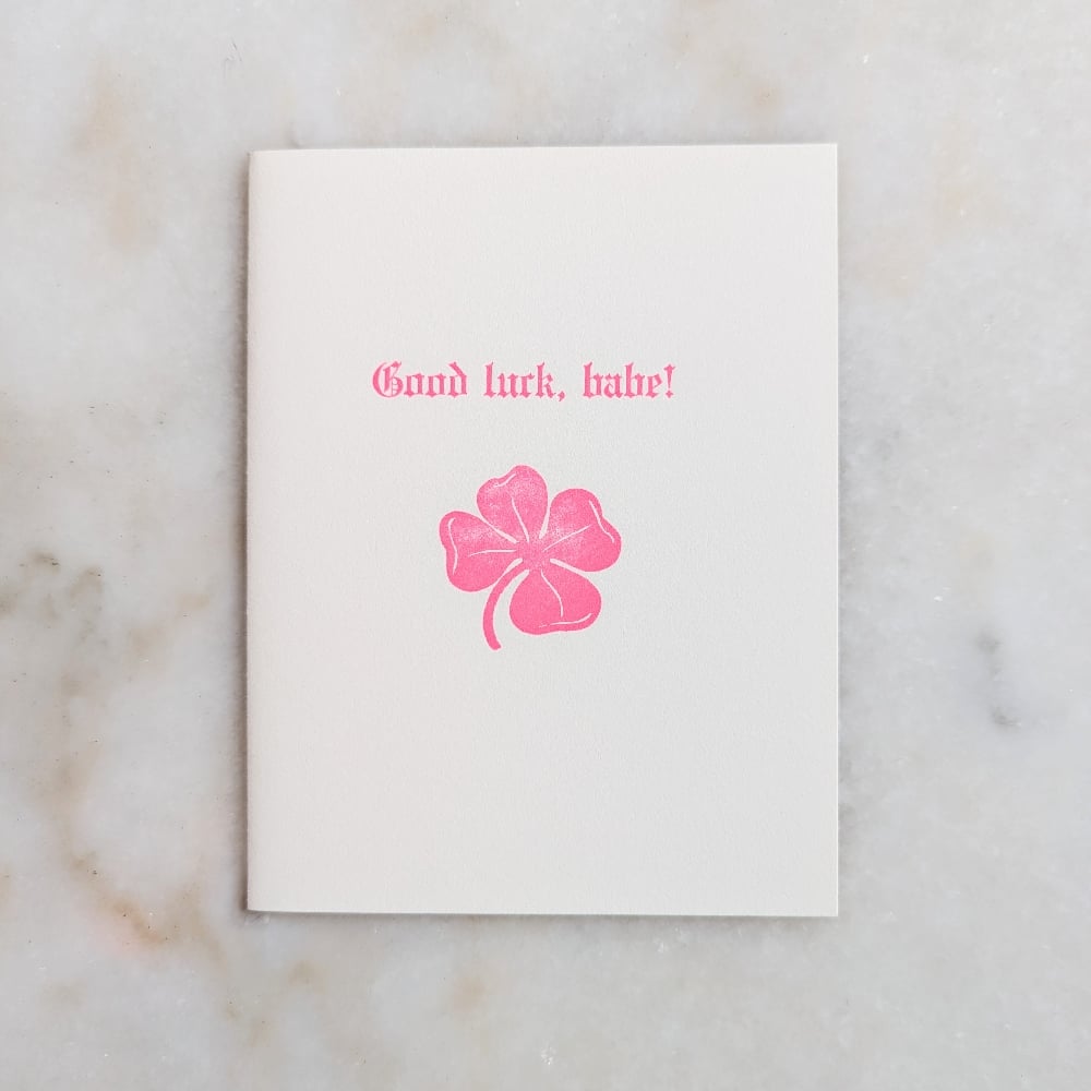 A card for Chappell Roan fans and wishing your loved ones (or enemies) good luck, lovingly letterpress printed by hand on ivory cover stock. Comes with matching envelope.